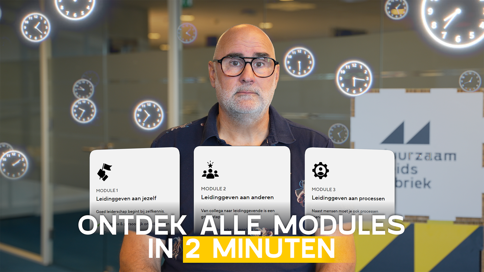 Begin met één van de eerste drie modules (Leidinggeven aan jezelf, aan anderen of aan processen). Zo kies je wat nú het beste bij jouw situatie past.